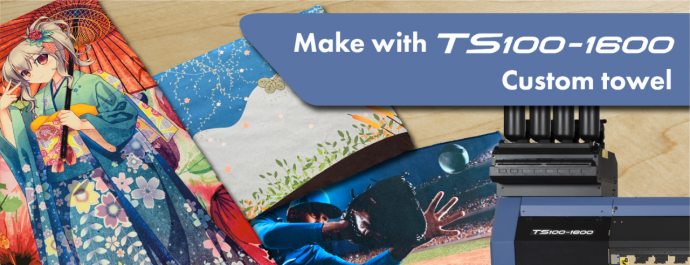 You can make a custom towel easily by the printing and sublimation transfer. Print on transfer paper with an inkjet printer TS100-1600 sublimation transfer printer and then transfer to a polyester towel with a heat press sublimation machine.