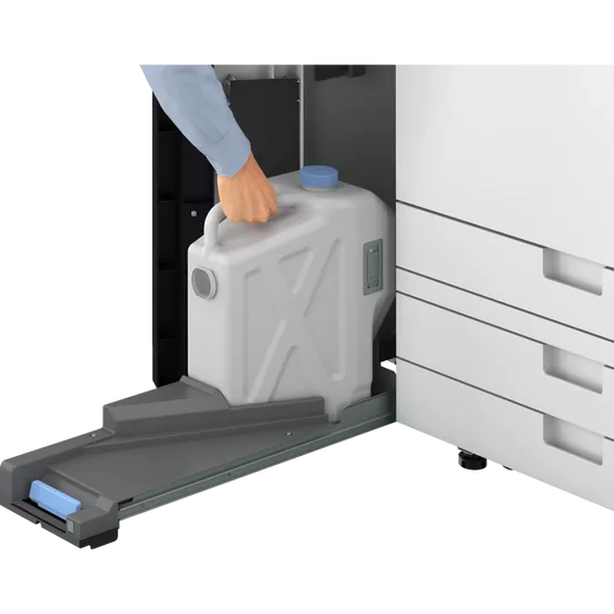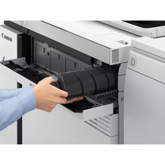 Maximise uptime by replacing toner and paper during printing, while the large-capacity waste toner box reduces slow down.