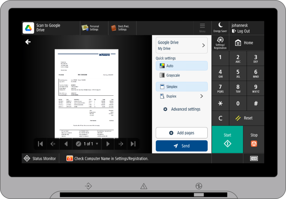 Digitalizing documents in a structured and secure manner reduces manual interaction and optimizes business processes and security measures. With uniFLOW Online, users can scan documents directly from most Canon multi-functional printers. Users can alter scan options directly at the device, enter required metadata and browse through the root of their selected destination to select a folder. Access to scan profiles can be restricted to individual users or groups.